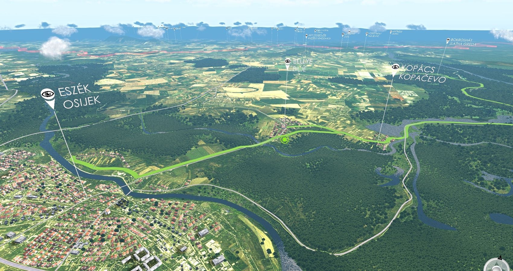 2014 augusztusban adtuk át a Hercegkúti pincesor és Hercegkút község, illetve a Baranyai Zöldút Bakonya és Eszék közt húzódó útvonalának 3 dimenziós, virtuálisan berepülhető modelljét. A virtuális repülés egyaránt élvezhető érintőképernyős kültéri kioszkon, vagy joystickkal vezérelt számítógépen. A felhasználó real-time, azaz valós időben tud mozogni a tájban, akár egy játékban. Megadott pontokon többnyelvű multimédiás információ helyezhető el.