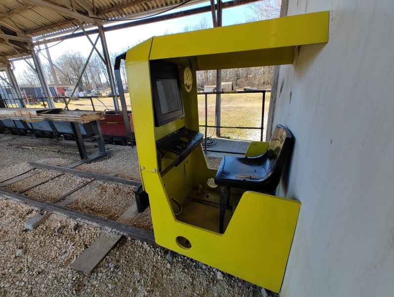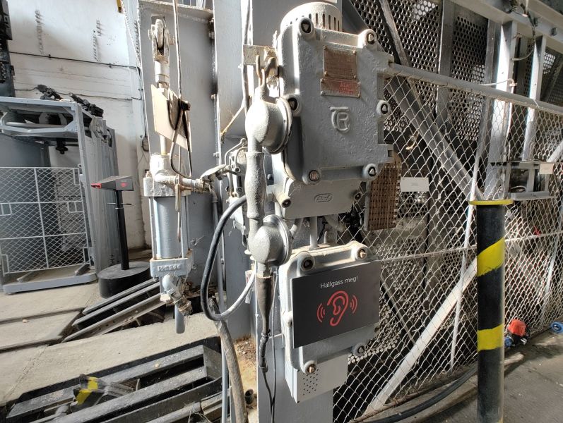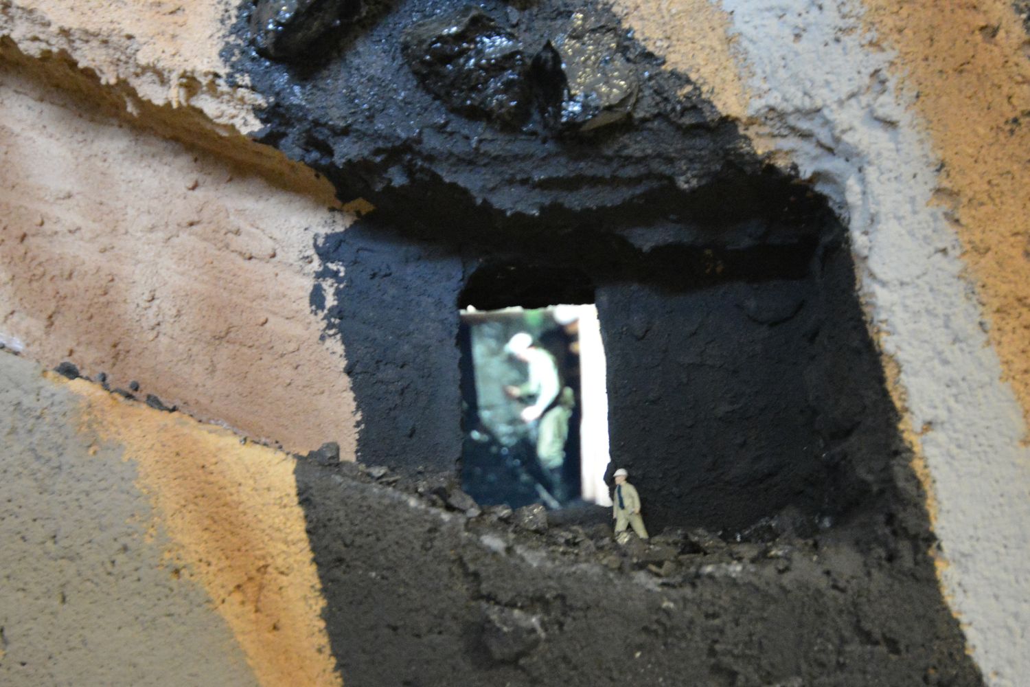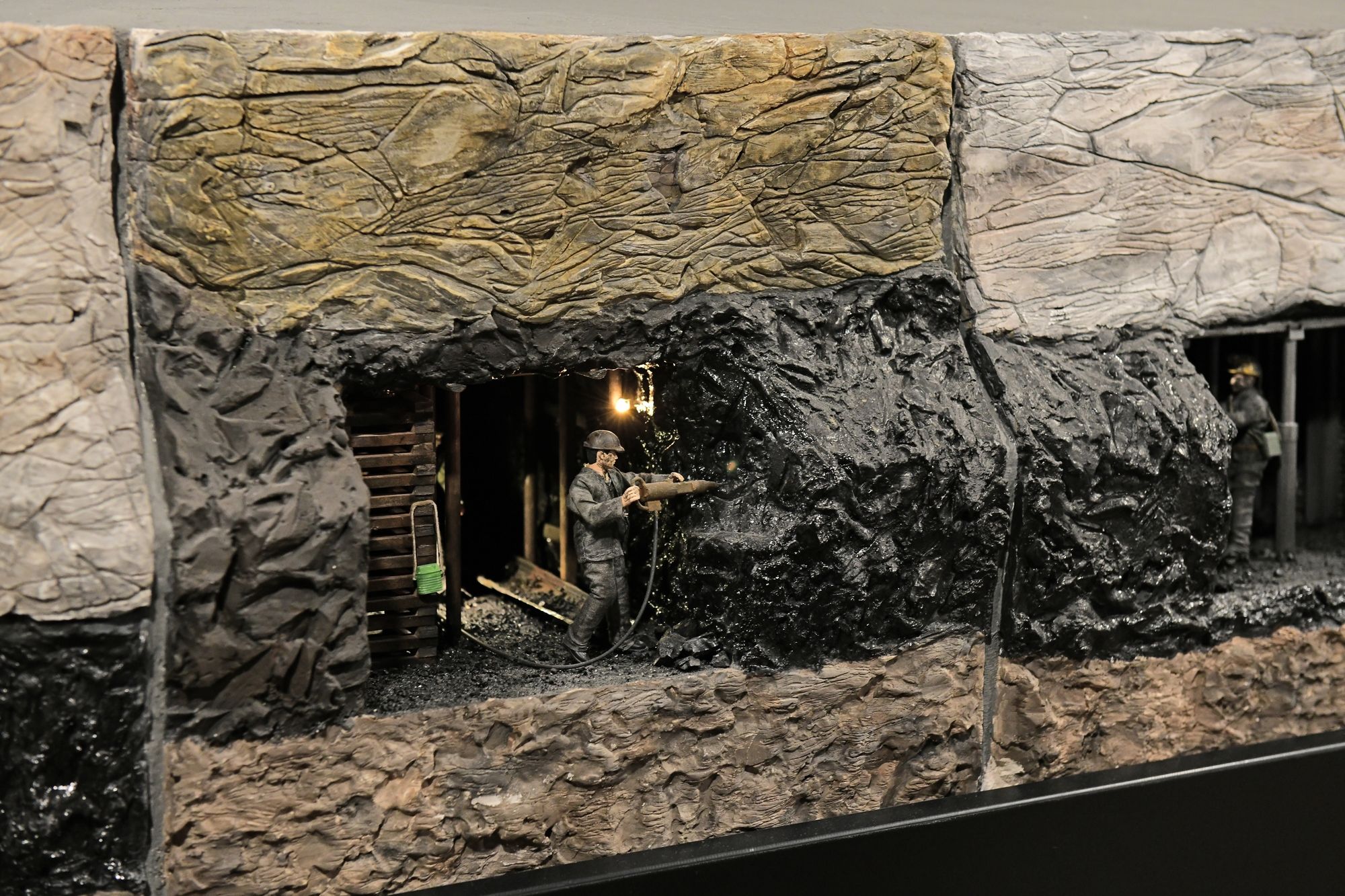 A szénfűtésről a gázfűtésre átállás szimulációja. Egy kar elforgatásával induló animációs rendszer kazán és kémény makettbe építve. Pécs, Zöld Zóna Látogatóközpont.