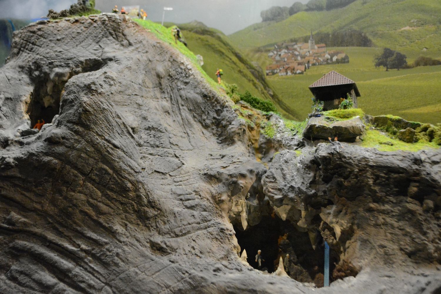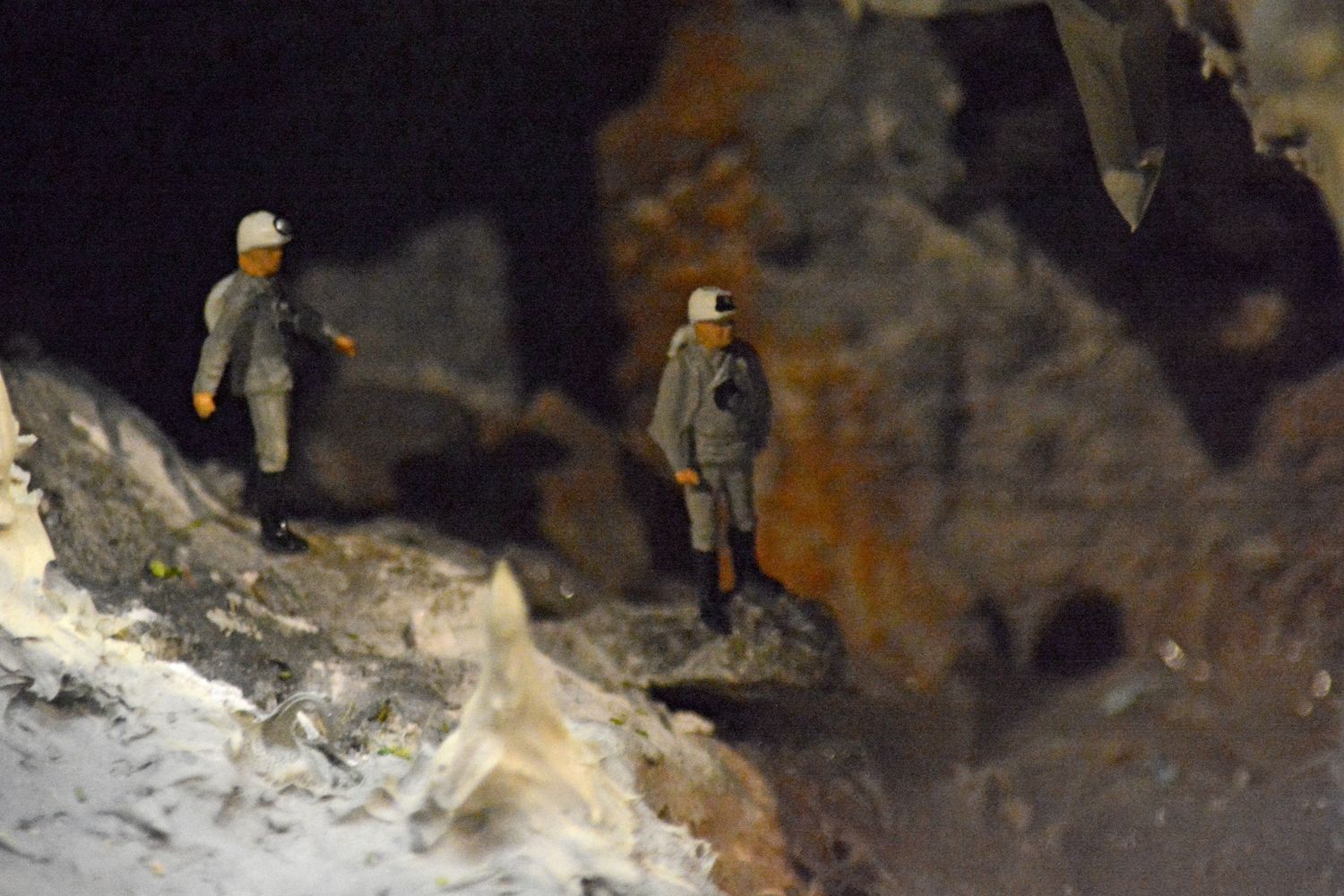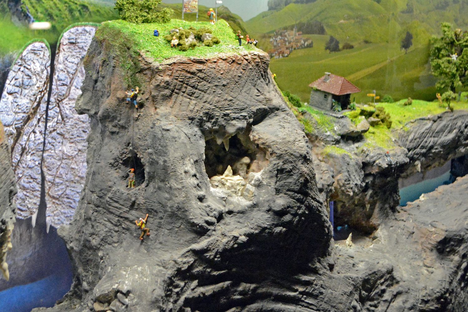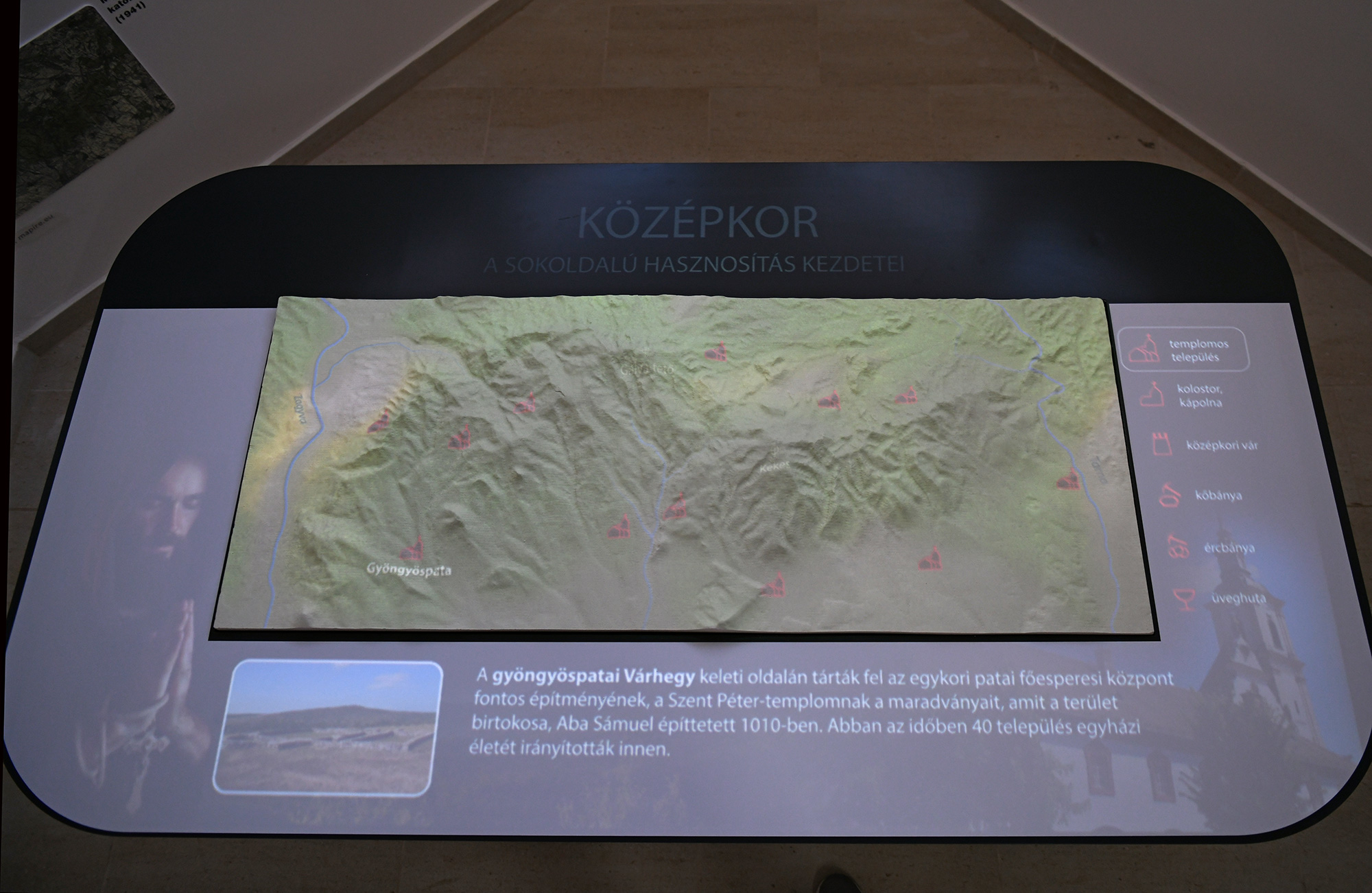 A karsztfelszín és barlangok képződését, ill. a karsztvíz felhasználását szemléltető vizes domborzat makett. Pécs, Tettyei-mésztufa barlang