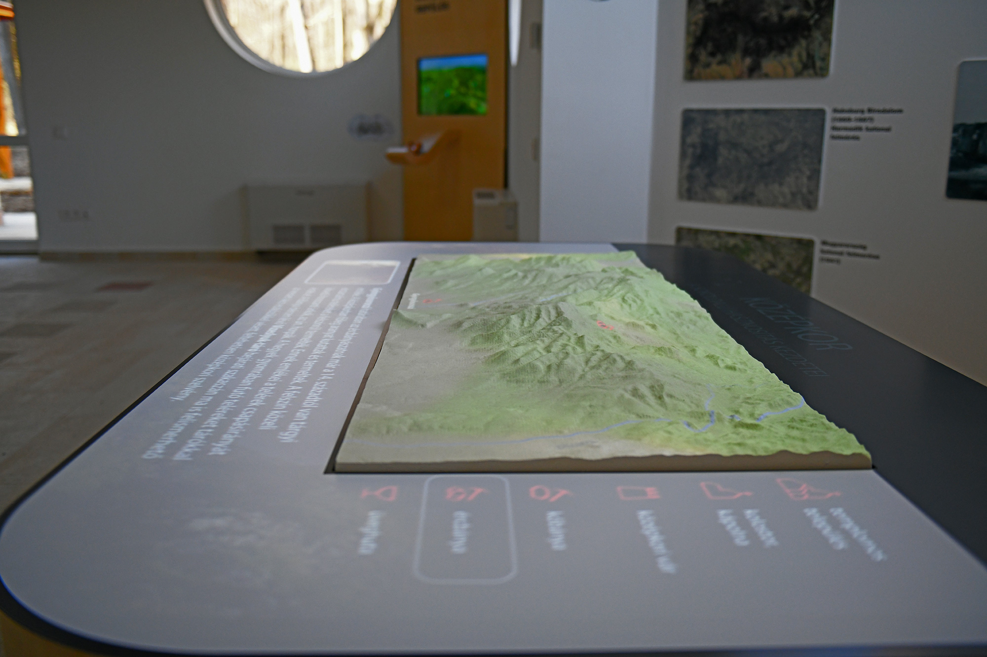 A Duna ártéri gazdálkodását, vízjárását szemléltető terepasztal. Kölked, Gólya-múzeum