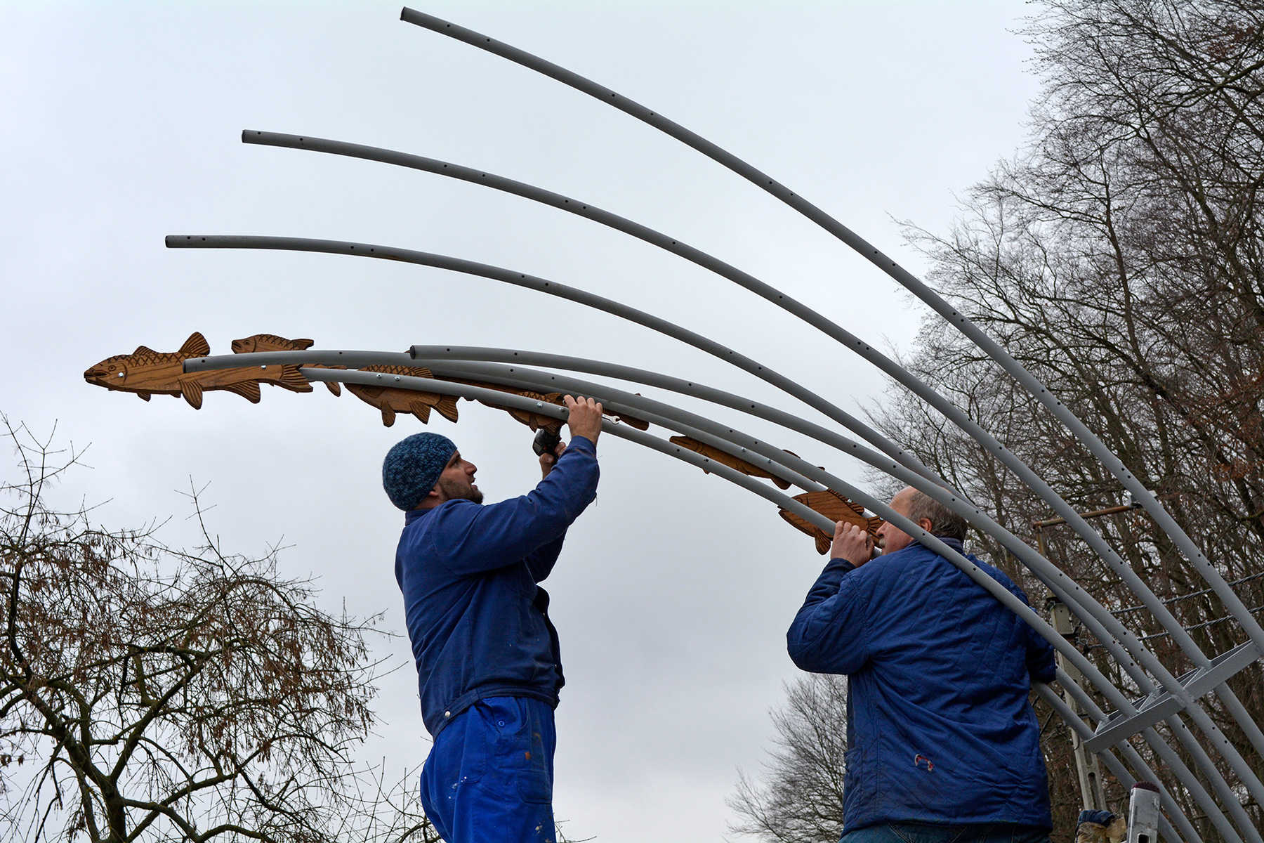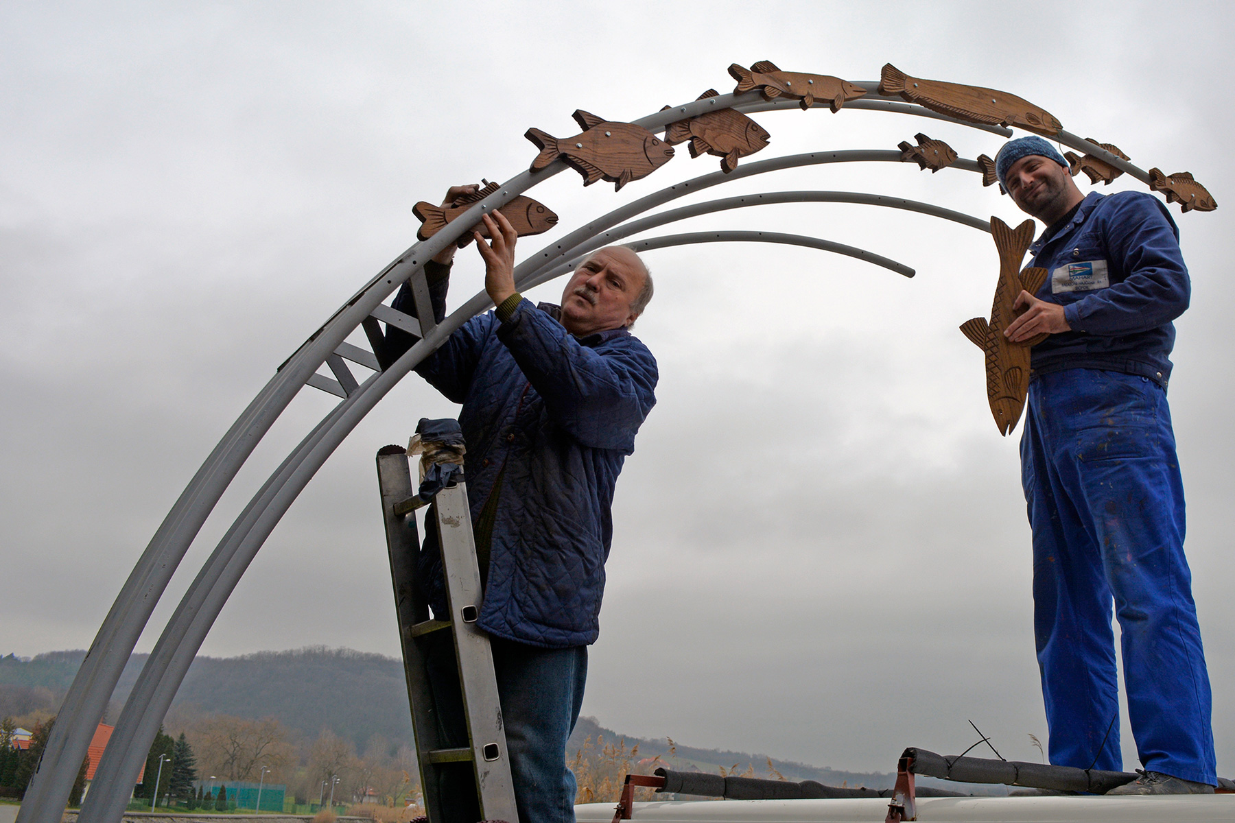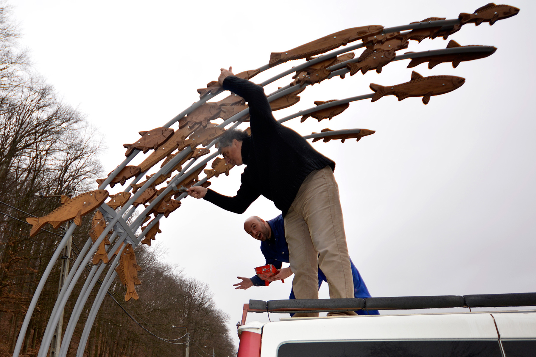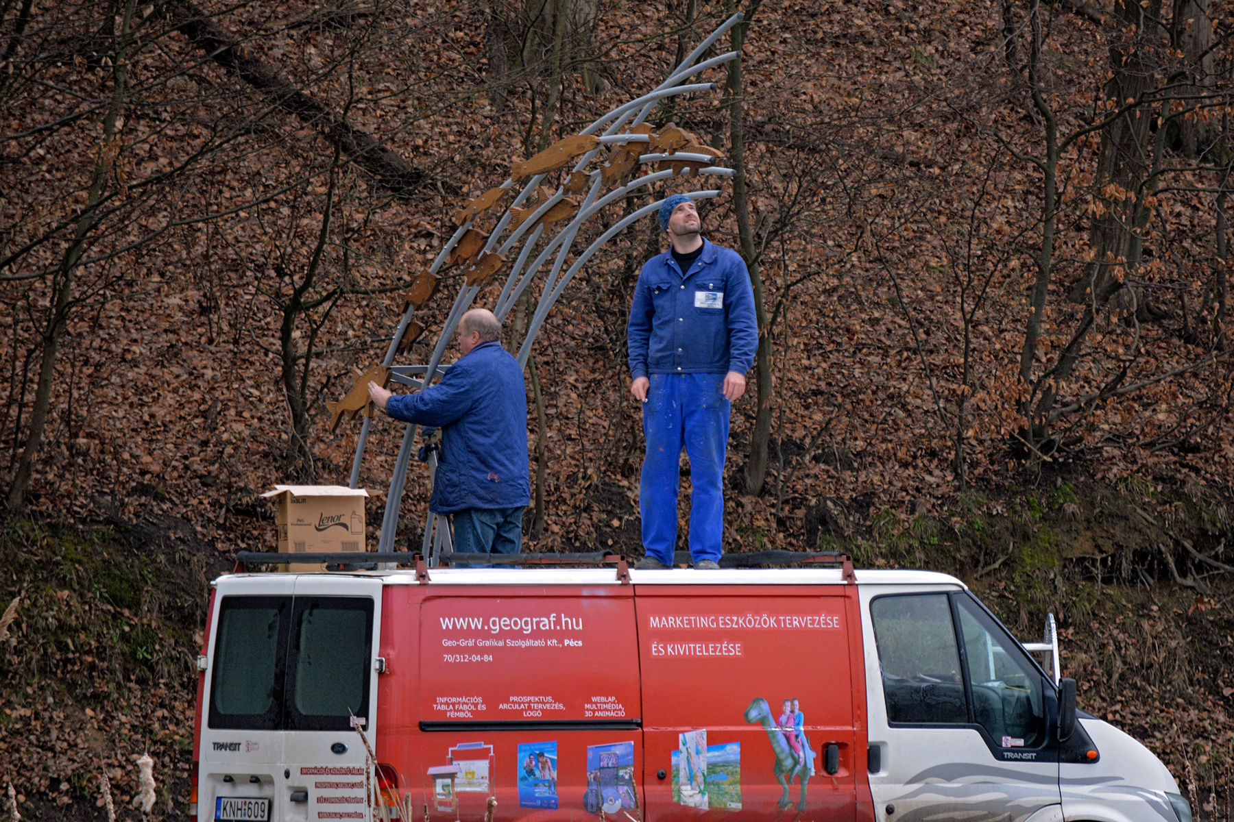 Orfűn, a Pécsi-tavat körülölelő sétány a természetkedvelő kerékpárosok, gyalogosok és futók számára épült ki pár éve. Az Orfűi TDM 2013 nyár elején nyílt tervpályázatot írt ki egy „Futókapu” elnevezésű installáció ötletére és kivitelezésére, melyre nyár végéig lehetett jelentkezni. A nyertes pályázatot Szász István, a Geo-Gráf Kft. ügyvezetője készítette. A zsűri méltányolta, hogy a terv kifejezi Orfű egyik legfőbb vonzerejét, egyedi, kreatív megjelenésű, illeszkedik a tájba. A tervezés egyszerűbb volt, mint a kivitelezés, de azért az időjárással dacolva sikerült felállítani a Pécsi-tó déli részén kezdődő, 6 km hosszú útvonal kezdő és végpontján. A kivitelezésben a Geo-Gráf Kft. munkatársainak (Sinkovits Milán, Kánya Péter, Szász István) segítségére volt Milkovics Jenő fafaragó és Papp Sámuel (Foreta ’86 Kft.).