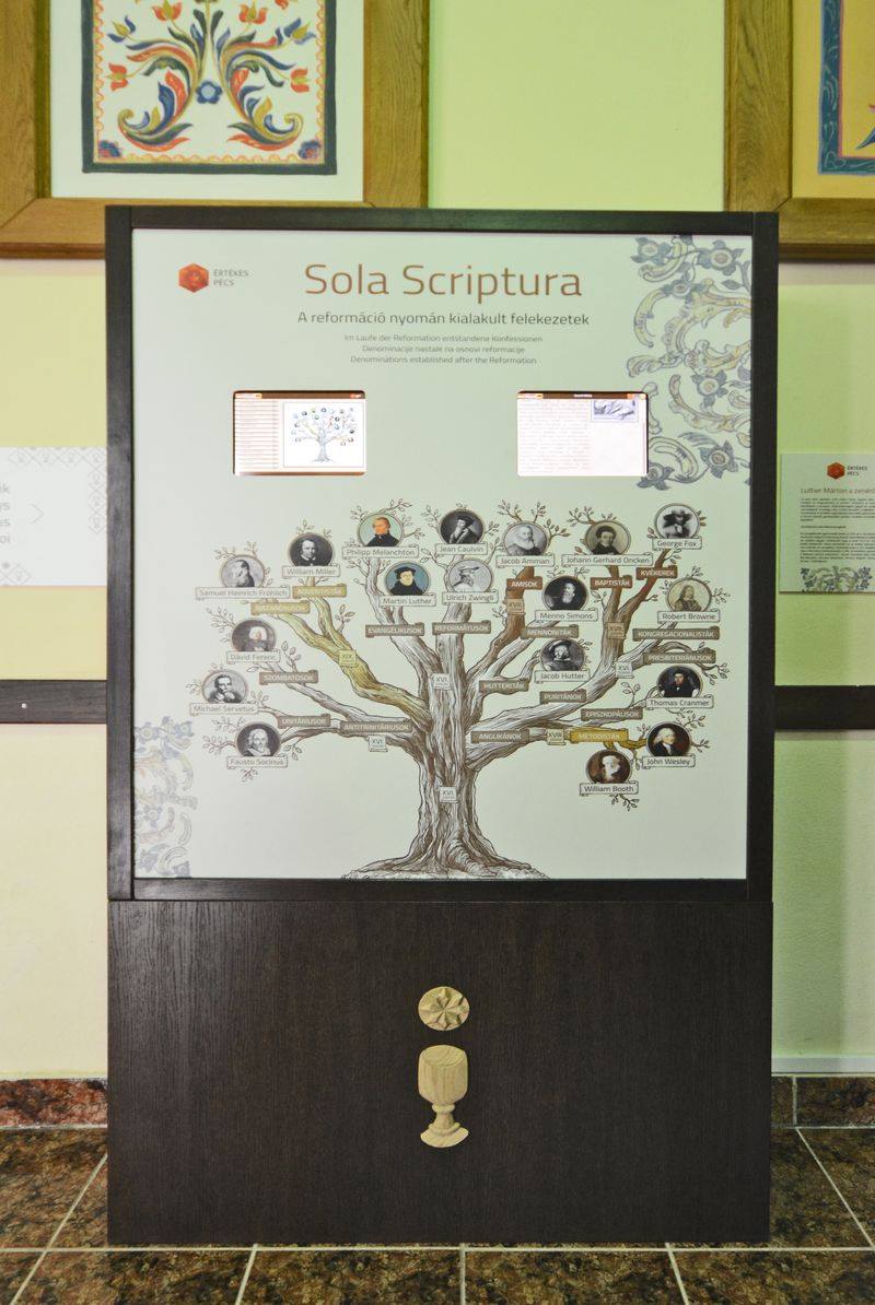 A Sztáray-teremben berendezett tárlat látogatói érintőképernyők használatával bővíthetik a reformációval kapcsolatos ismereteiket, s mintegy ötven, Baranya megyéből származó, tárlókban elhelyezett több száz éves kegytárgyat, könyvet, dokumentumot vehetnek szemügyre, reformáció történeti filmet tekinthetnek meg.